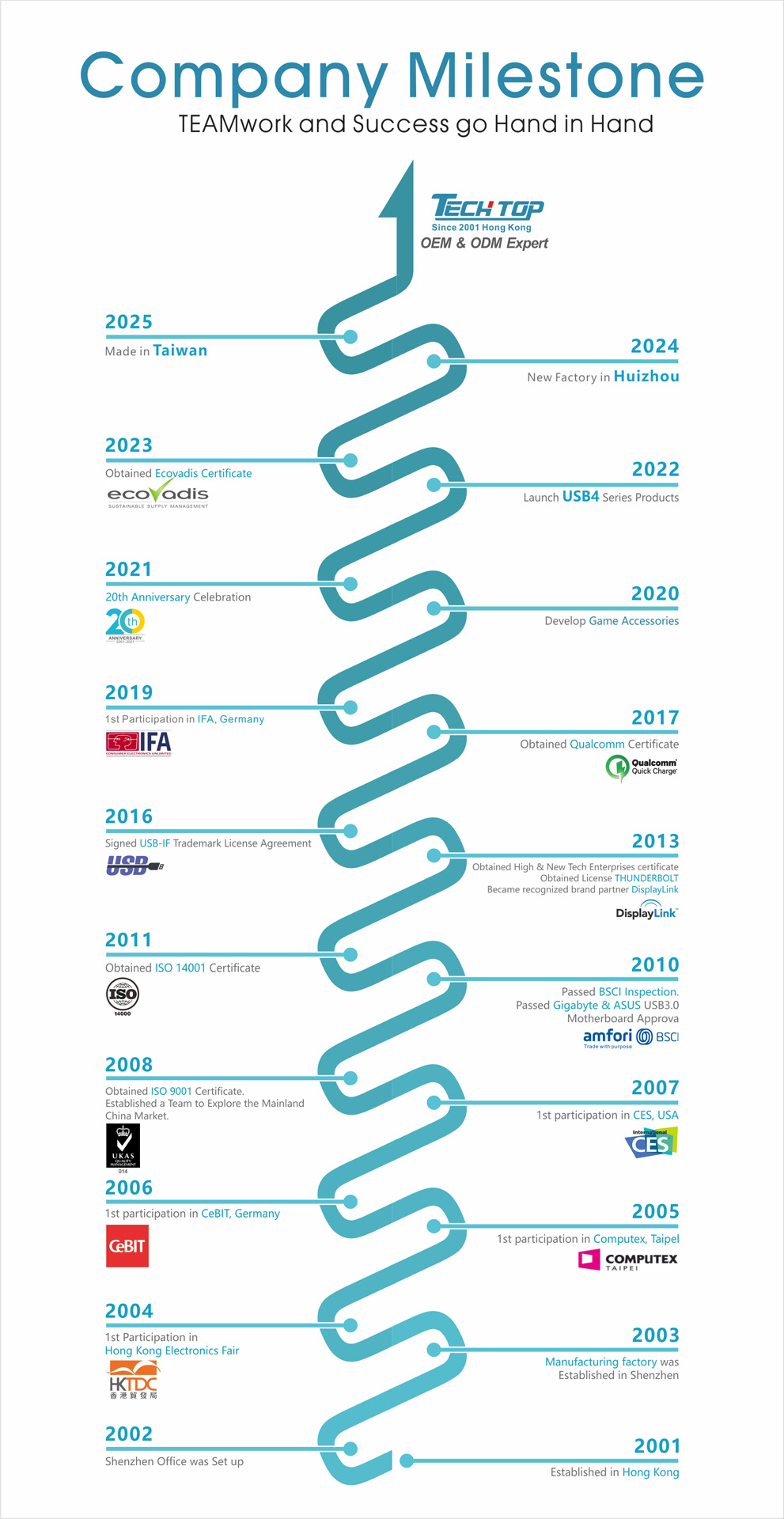 We are always moving forward with the development of USB, from USB1.1 to the latest - USB3.2. With 18 years of experience in this industry, today we have wide customer network spread all over the world. We have practical experience in serving customers with different demands. What to make us unique is our “One Stop Service”, we have our own R&D team to after sales service team. We make you confident and convenient. Quality is our commitment to all of our customers.