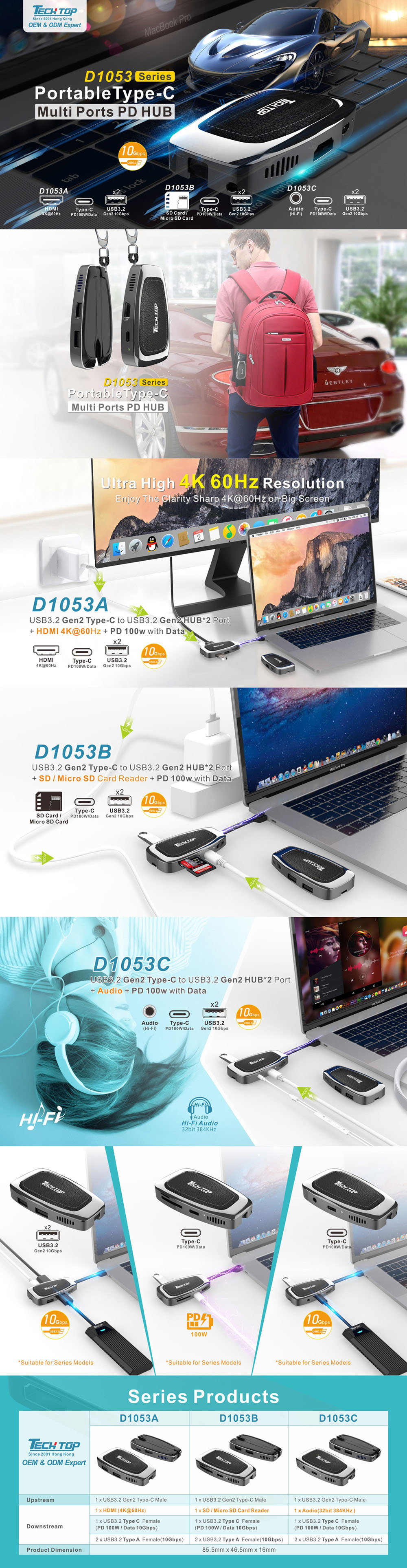 NEW D1053 Series PortableType-C Multi Ports PD HUB