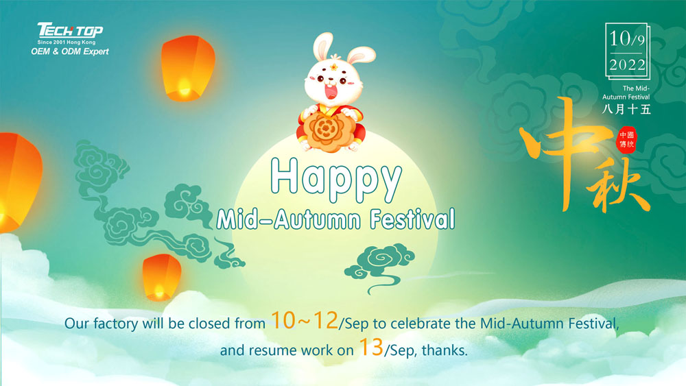 Our factory will be closed from 10~12/Sep to celebrate the Mid-Autumn Festival, and resume work on 13/Sep, thanks!