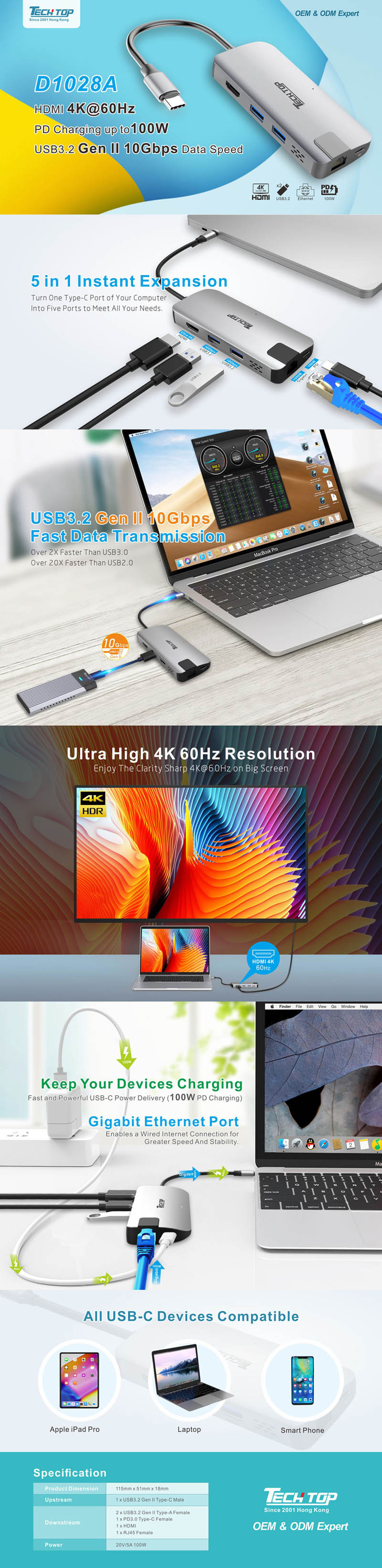 NEW:D1028A -- USB3.2 Gen 2 Type-C Multi-Port Hub with Power Delivery