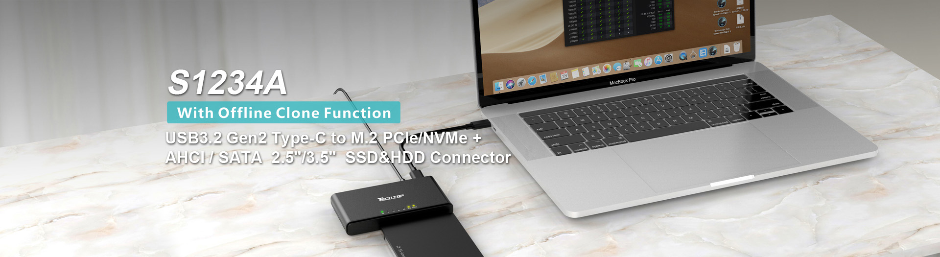 S1235B: USB3.2 10Gbps Type-C to M.2 & SATA3 & IDE133 Dual-LUN Adapter with Offline Clone