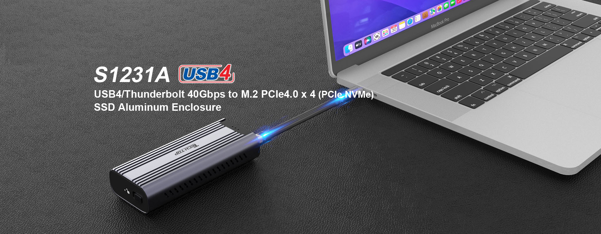 S1242A: USB4 40Gbps to M.2 PCIe4.0 x 4 (PCIe NVMe) SSD Aluminum Enclosure