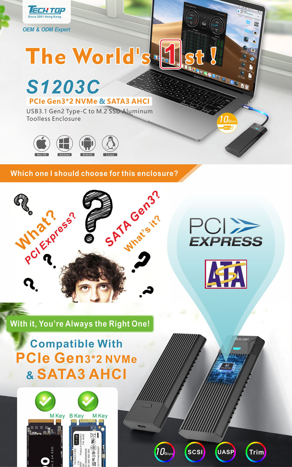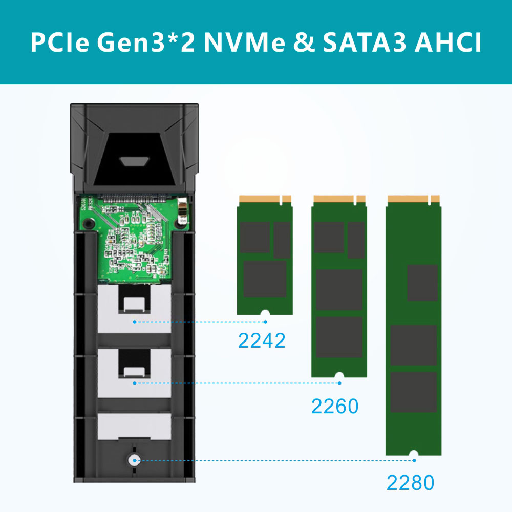 Performance: 10Gbps (USB 3.2 Gen 2), PCIe NVMe/SATA 6G, Tool-free, LED status, Plug&Play