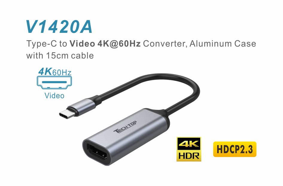 V1420A: Type-C to Video 4K@60Hz Converter, Aluminum Case with 15cm cable
