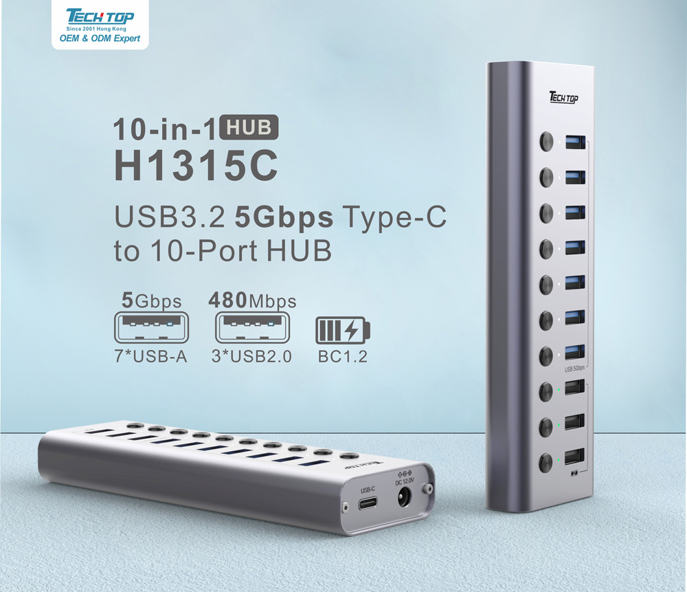 Downstream Ports: 7x USB3.0 Type-A (5Gbps) + 3x USB2.0 Type-A (480Mbps)