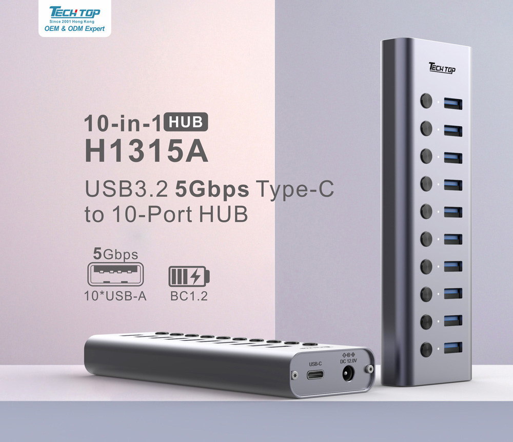 Downstream Port: 10xUSB-A Female (All Ports 5Gbps + BC1.2 Charging)