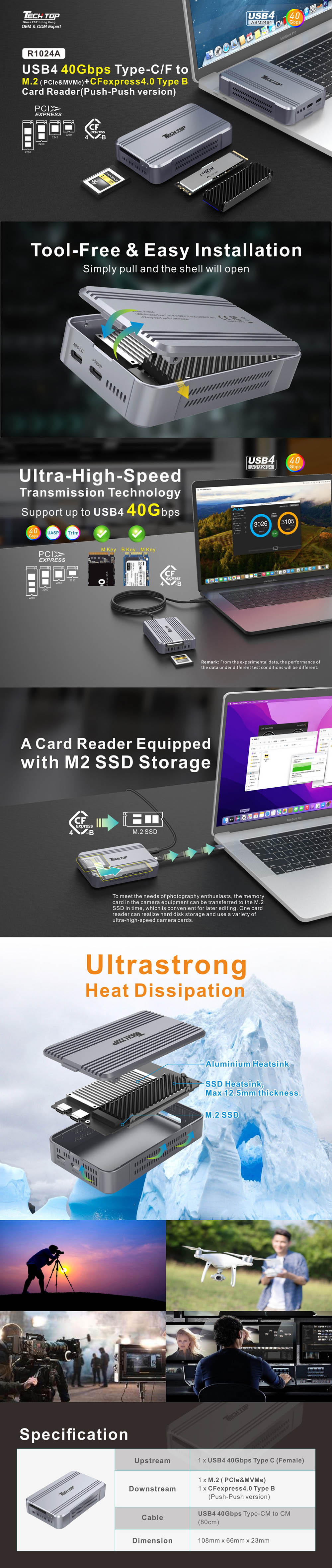 Performance: Max 40Gbps, CFexpress 4.0, M.2 PCIe&NVMe