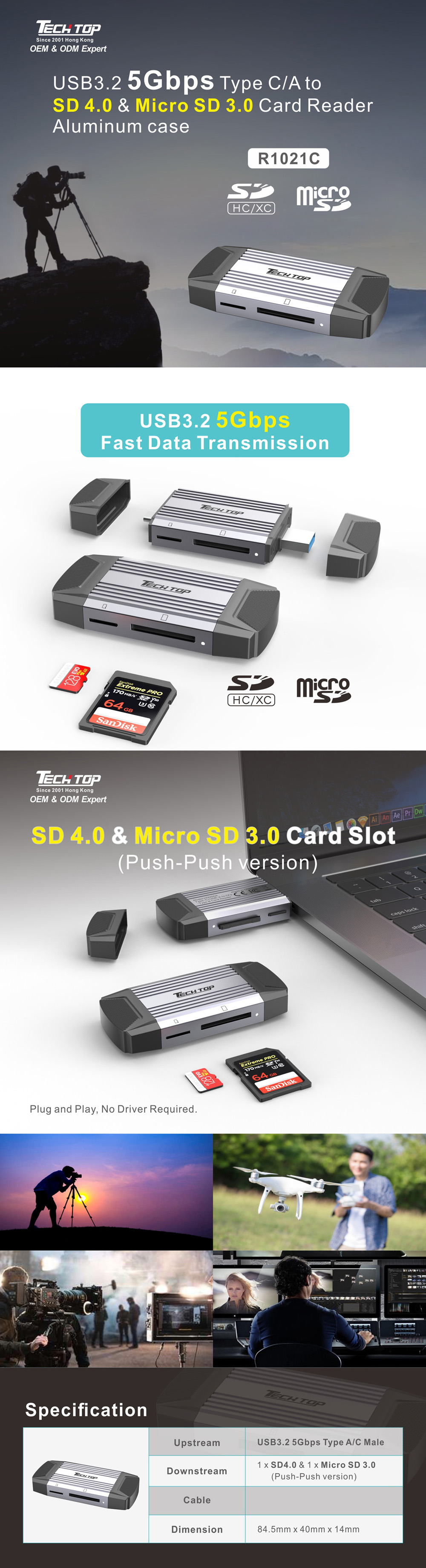 Downstream Port: 1 x SD & Micro SD Card Slots (Push-Push)