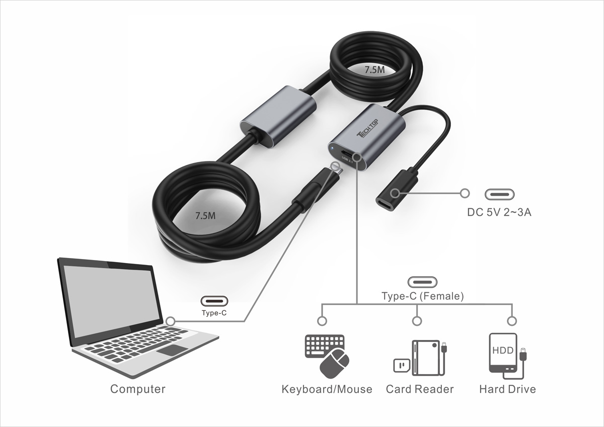 Upstream Port: 1x USB-C Male, USB 3.0 (5Gbps)
